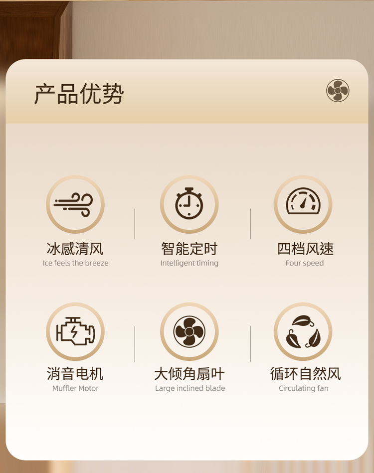 功能:四档风速选择、可预约定时关机